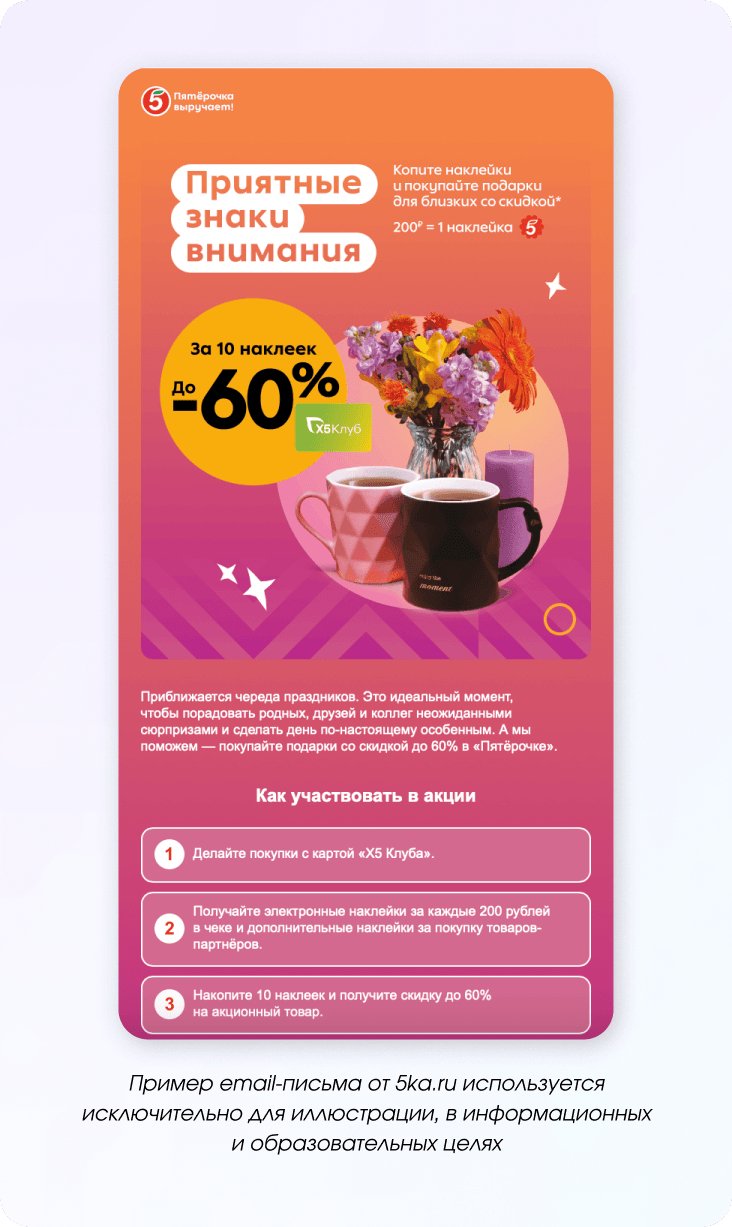 Такие письма не давят офферами, зато укрепляют отношение к бренду и формируют лояльность. А доверие со временем напрямую отражается и на продажах.