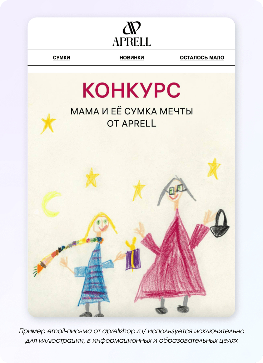 Например, бренд сумок обыграл тему ностальгии: напомнил, что для многих этот день ассоциируется с детством и подарками для мамы, сделанными своими руками. Такой тёплый контекст вызывает отклик и делает коммуникацию более личной.