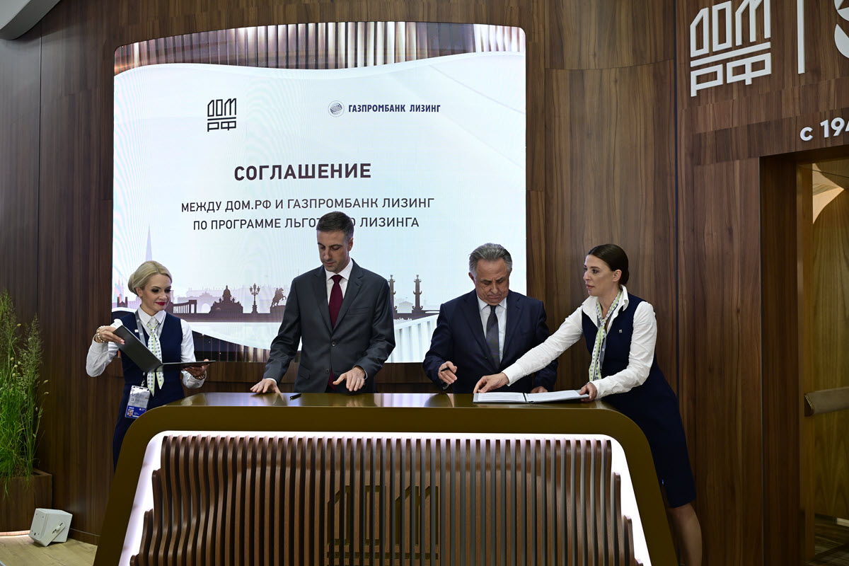 Газпромбанк Лизинг и госкомпания ДОМ.РФ подписали соглашение о сотрудничестве в области реализации инвестиционных проектов. Церемония подписания состоялась на полях Петербургского международного экономического форума (ПМЭФ-2025). Подписи под документом поставили Вице-Президент Банка ГПБ (АО), генеральный директор Группы Газпромбанк Лизинг Вячеслав Спиров и генеральный директор ДОМ.РФ Виталий Мутко.