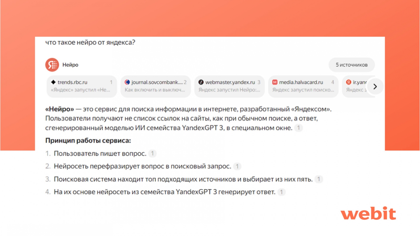 - предоставляет источники, на основе которых подготовлен ответ.