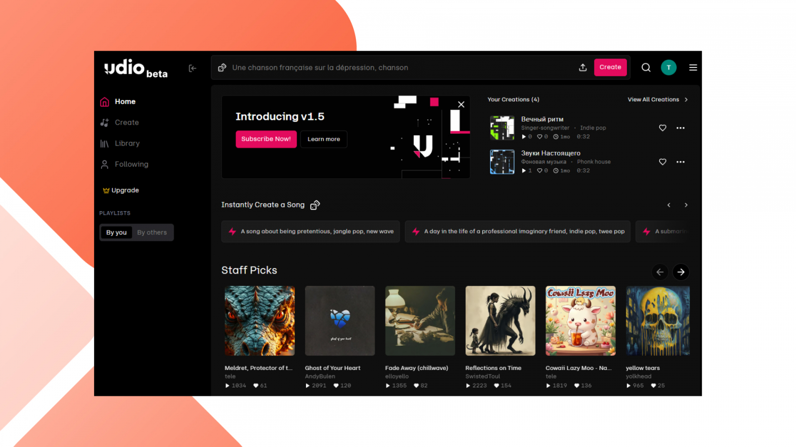 Генерировать музыку с помощью нейросетей тоже возможно. Такой функционал есть в сервисе Udio. Вы пишете промт, ждете несколько минут и наслаждаетесь своим треком.