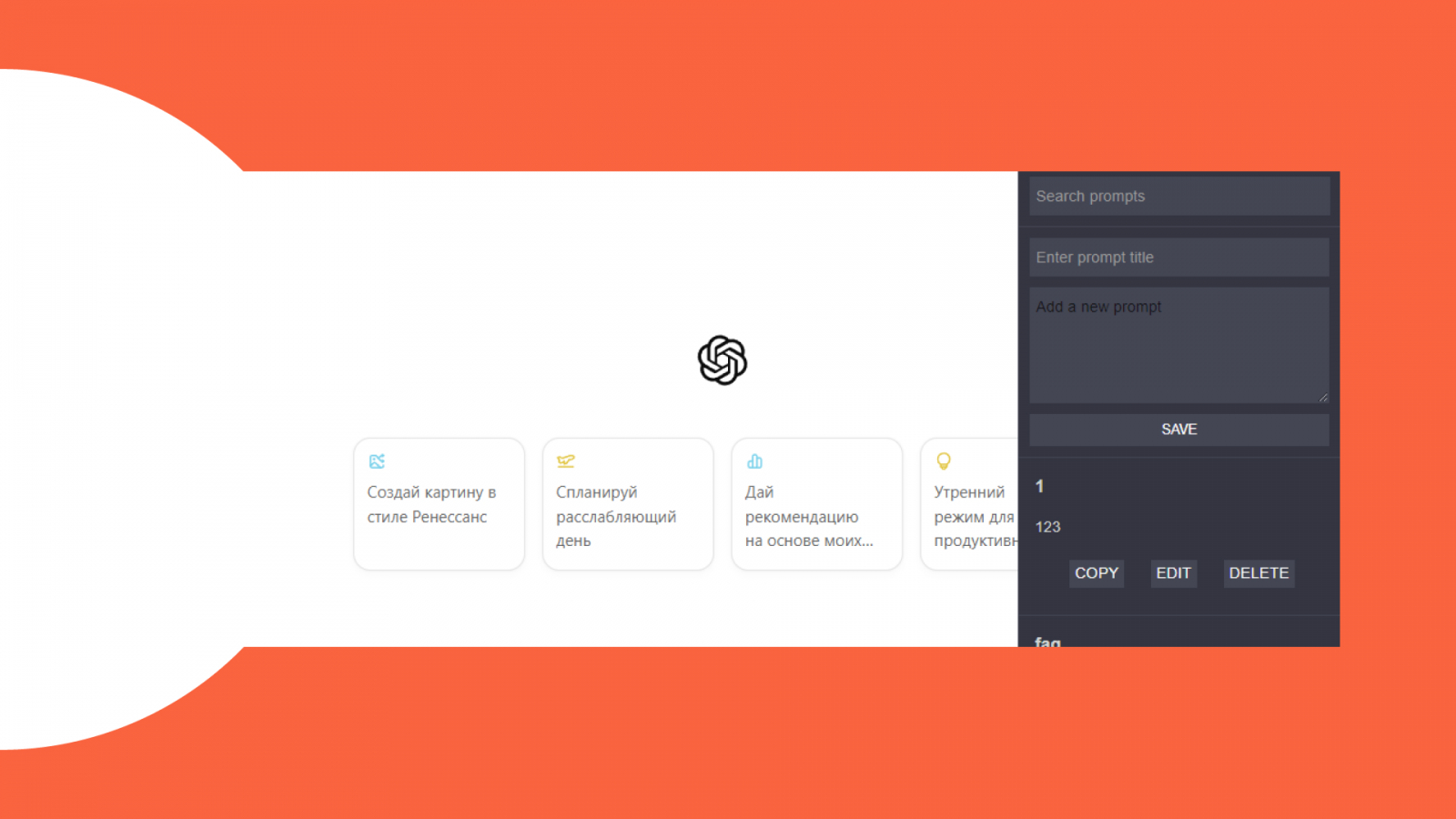 P.S.Это расширение не использует искусственный интеллект, но оно помогает структурировать часто используемые промты для работы с искусственным интеллектом))