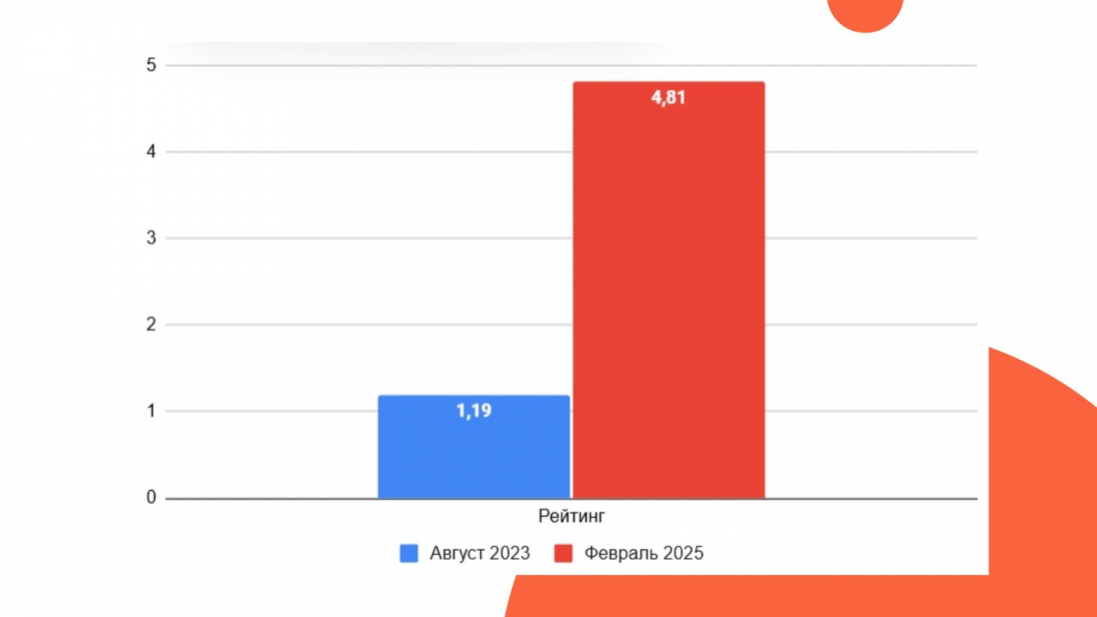 Средний рейтинг карточек товаров бренда на всех релевантных площадках поднялся на 3,62 (с 1,19 до 4,81).