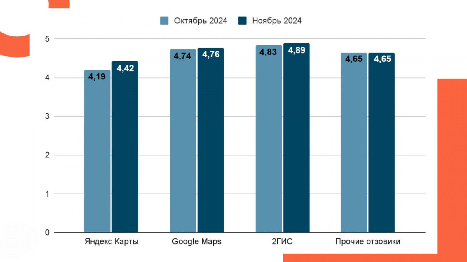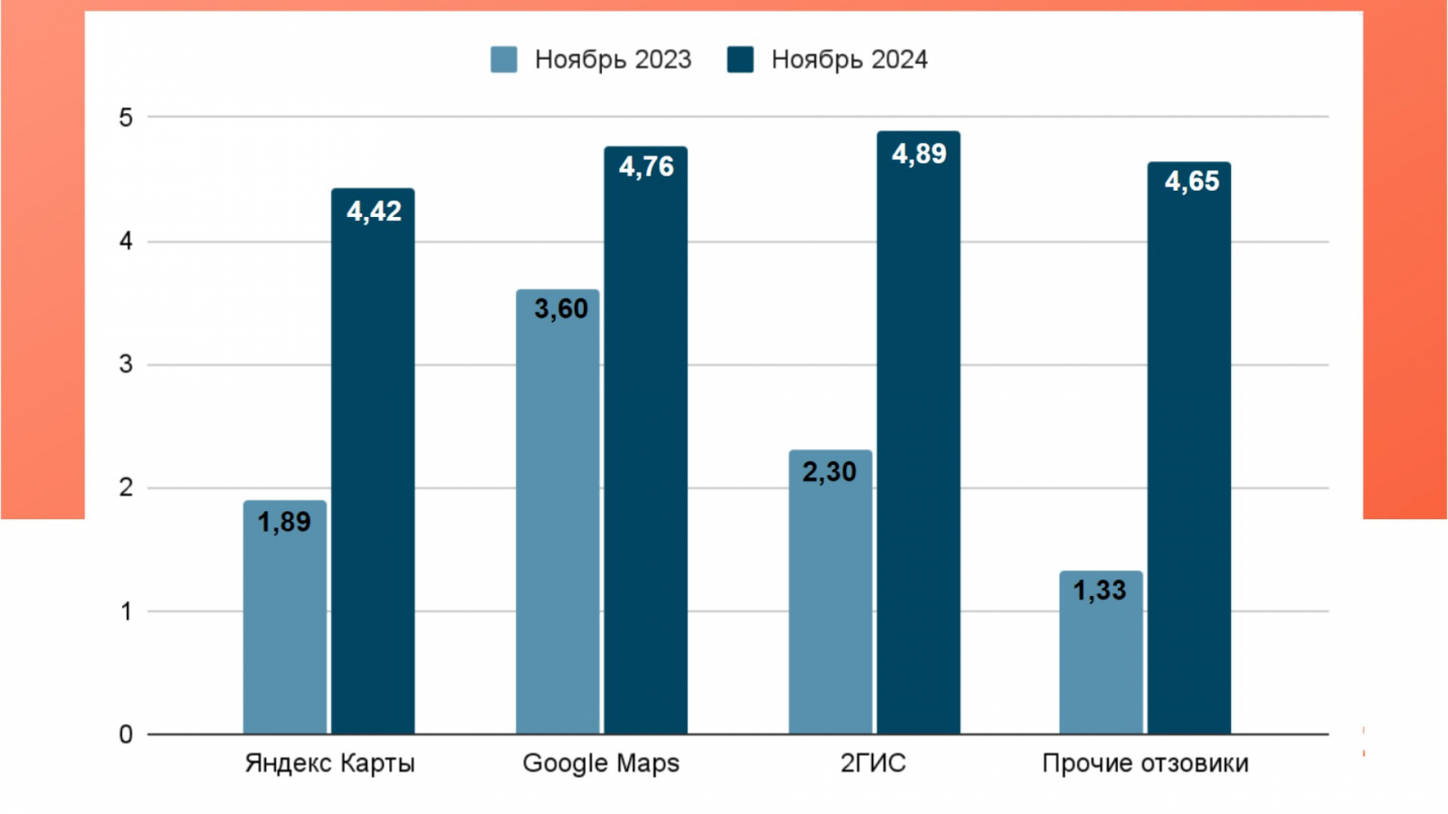 Интенсивный старт заложил фундамент для дальнейшего долгосрочного и продуктивного сотрудничества. Рейтинги компании на геосервисах и других площадках-отзовиках начали расти. А самое главное, что заказчик погрузился в специфику работы с отзывами и понял, что она должна носить системный характер.