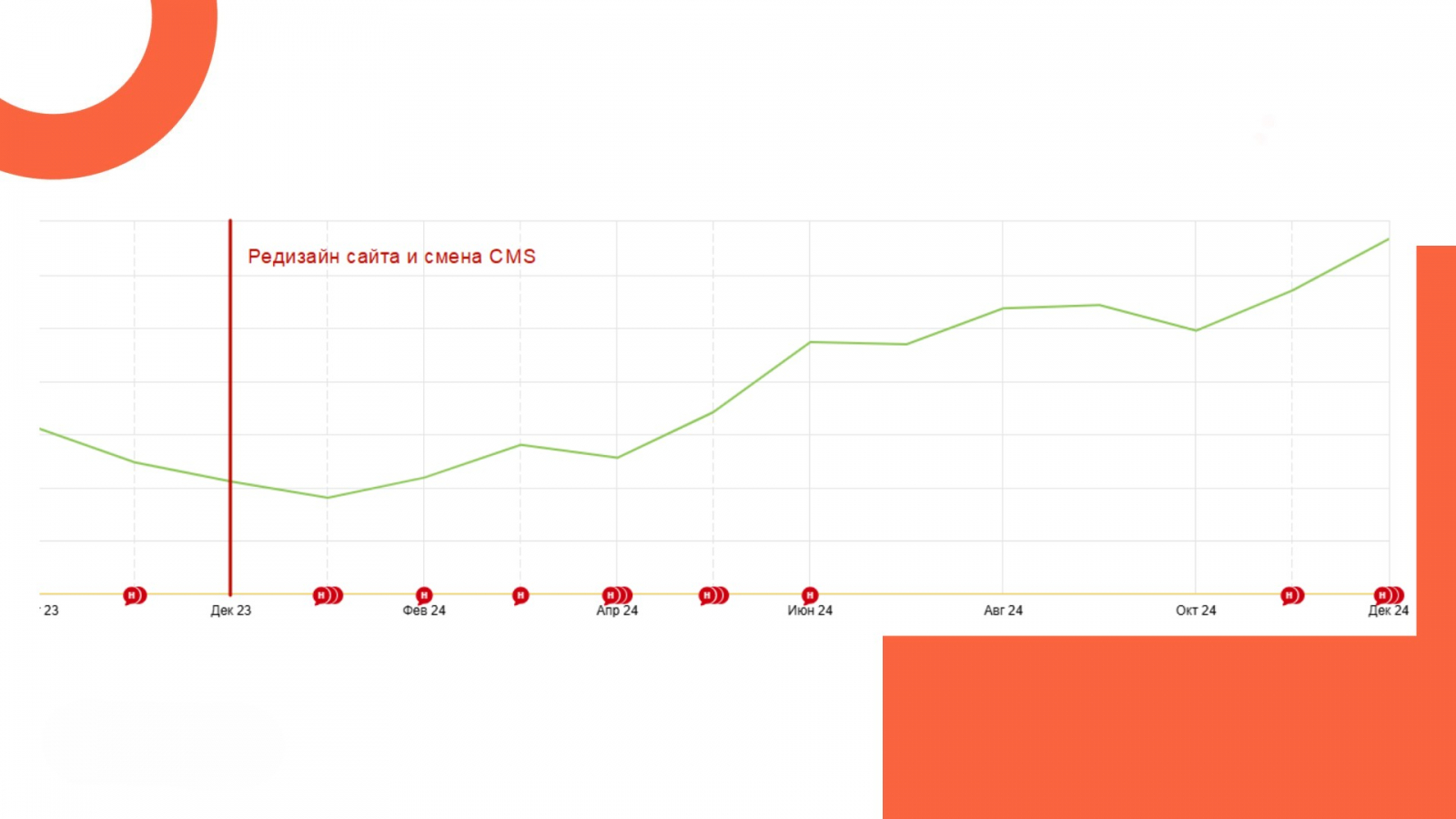 Этот кейс будет полезен компаниям, которые планируют редизайн сайта и смену CMS. Задача SEO — плавный переезд с сохранением накопленных показателей и последующее всестороннее развитие сайта.