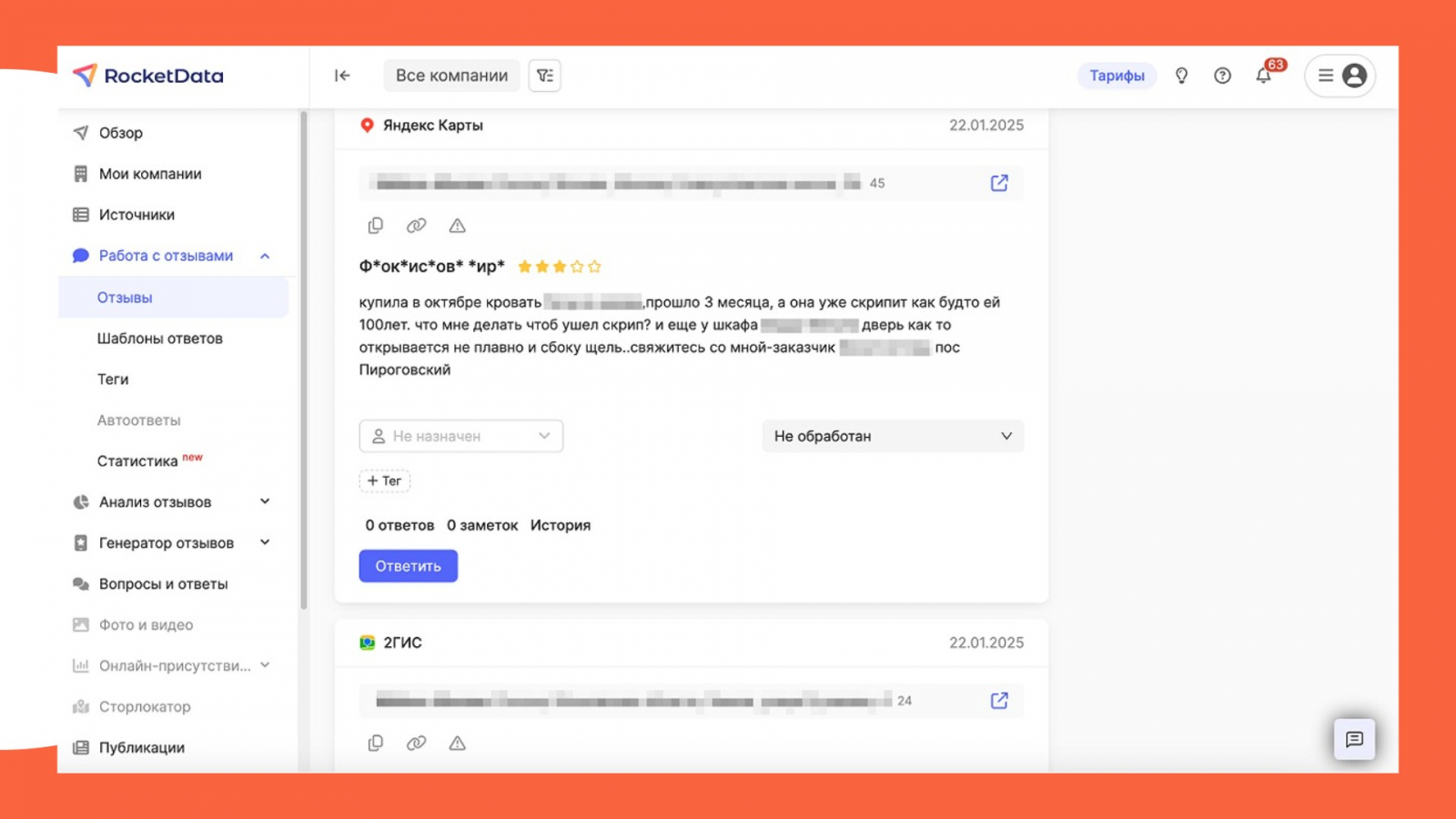Инструменты управления отзывами, такие как RocketData и Поинтер, предоставляют возможность автоматического уведомления о новых отзывах, настройки шаблонов ответов и интеграции с API. Это значительно упрощает процесс обработки обратной связи и позволяет оперативно реагировать на клиентские обращения.