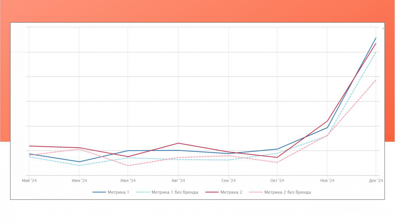 У продавцов высококачественного алкоголя пик сезонности приходится на декабрь — предпраздничный месяц. В декабре 2024 года коммерческий небрендовый трафик был почти в 2 раза выше, чем годом ранее. Динамика составила +92%. Результаты по росту коммерческого небрендового трафика в первую очередь связаны с увеличением переходов из Яндекса.