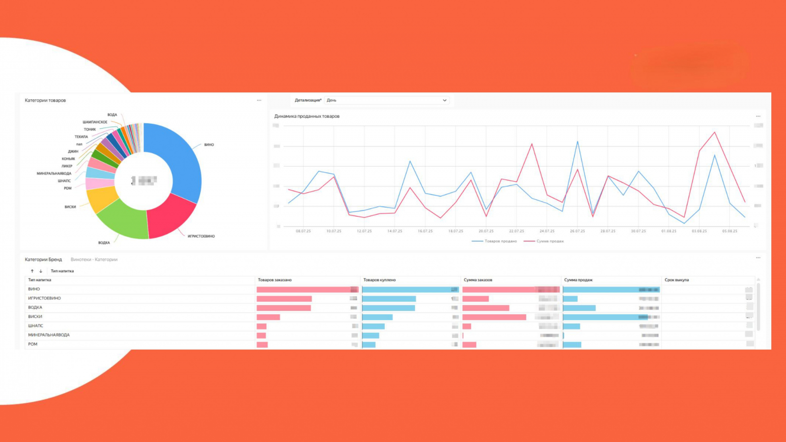 По сути, требовался инструмент, который объединял бы данные из онлайн-источников и офлайн-данные по продажам в винотеках. Такой инструмент должен был стать не просто отчетной системой, а полноценной платформой бизнес-аналитики для оперативного и точного управления.