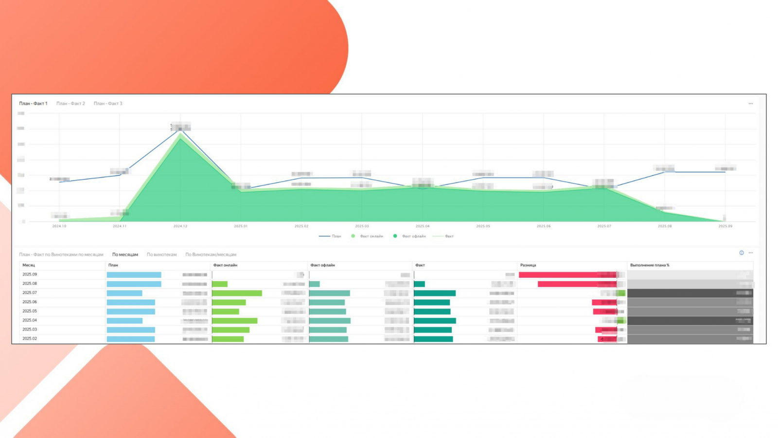 Компания поставила четкую задачу: «Покажите, что продается, где и когда. Откуда пришли заказы. Какие источники приводят к покупке, а не просто к клику. Как соотносятся план и факт. И все это в понятном, живом виде, без Excel».