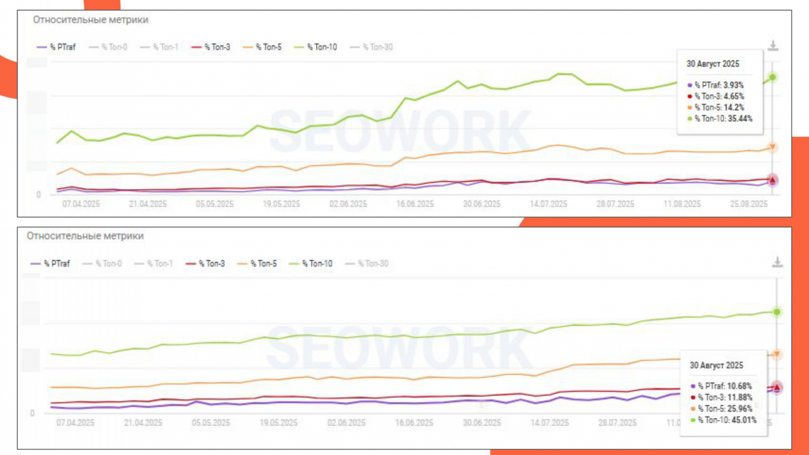 Особенно заметный рост наблюдается с апреля 2025 года — в этот период мы расширили семантику и добавили новые запросы.
