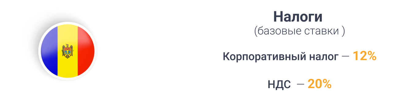 Основным налогом для юридических лиц в Молдове является налог на прибыль компаний. В 2024-ом году корпоративная налоговая ставка равна 12%, что делает ее конкурентоспособной относительно идентичного налога в соседних странах. Это создает благоприятные условия для учреждения бизнеса иностранными инвесторами с незначительными издержками на налогообложение.