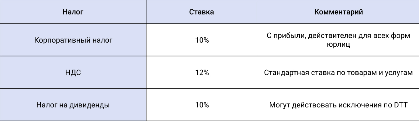 В рамках классической схемы налогообложения основной фискальной единицей выступает налог с прибыли. Его обязаны уплачивать все юридические субъекты, имеющие регистрацию на территории страны. Стандартная ставка составляет 10 % от размера чистого дохода. Компании, получающие поступления из иностранных источников, при расчетах должны учитывать положения международных соглашений, исключающих двойное налогообложение.