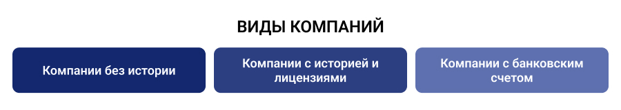 Третий вариант — компании с активным банковским счетом, что позволяет оперативно начать проведение финансовых операций и заключение контрактов.