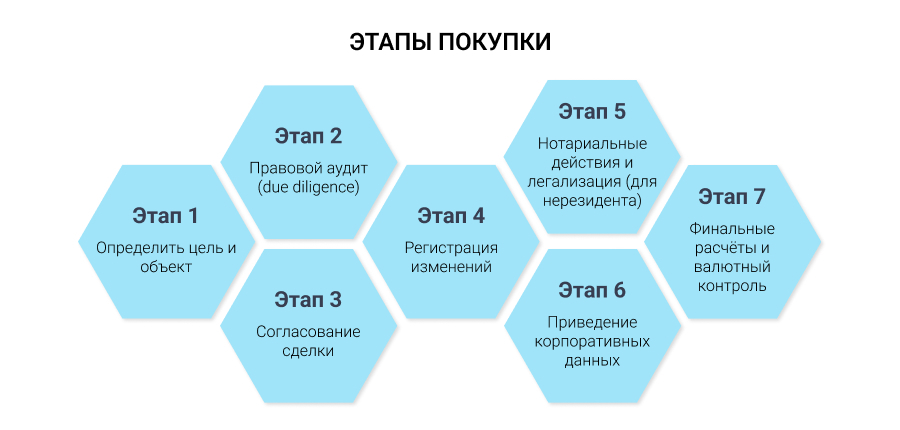 Первый этап — определение цели и объекта. Необходимо решить, будет ли это торговая, производственная или сервисная структура, и провести первичную проверку отрасли по актуальному Negative List. Если деятельность разрешена, можно переходить к подбору компании. На данном этапе целесообразно привлечь советников, знакомых с местной практикой структурирования M&A-сделок в Китае, чтобы проверить контур собственности и внутренние акты компании.