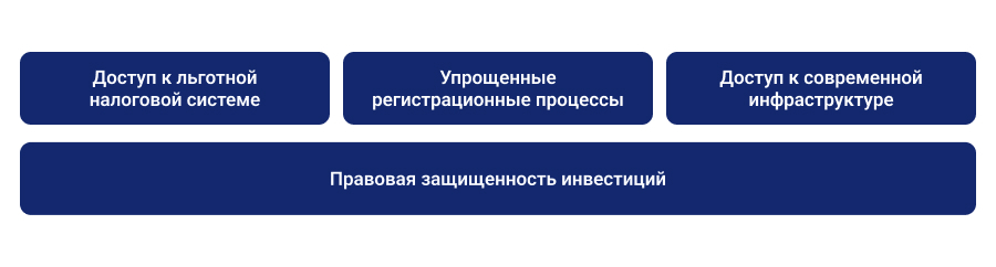 Для организаций, осуществляющих операции в пределах территории, ставка КПН — 0%. То есть прибыль, полученная от экспортных или внутризоновых операций, полностью освобождена от обложения. Операции по поставке в пределах СИЗ, а также экспорт из зоны, проходят по нулевой ставке НДС. При этом ввоз оборудования и материалов не облагается импортными пошлинами.