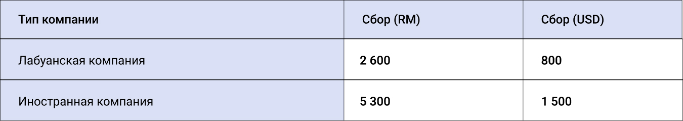 Открытие компании в Лабуане сопровождается понятной системой государственных платежей. Все пошлины делятся на два типа: регистрационные (однократные) и ежегодные (периодические). Размер зависит от формы компании, объема уставного капитала и статуса как местной или иностранной структуры. Валюта платежей — малайзийский ринггит (RM) с ориентировочным эквивалентом в долларах США (USD).