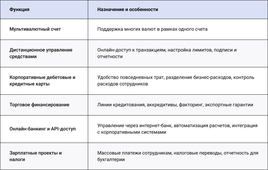 Большинство функций становятся доступными сразу после оформления корпоративного счета в банке Гонконга, при условии прохождения проверки и подтверждения деловой активности. Инструменты гибко настраиваются под структуру компании и тип операций. Это особенно важно при работе с зарубежными контрагентами и партнерами, когда требуется высокая скорость и юридическая чистота всех расчетов.