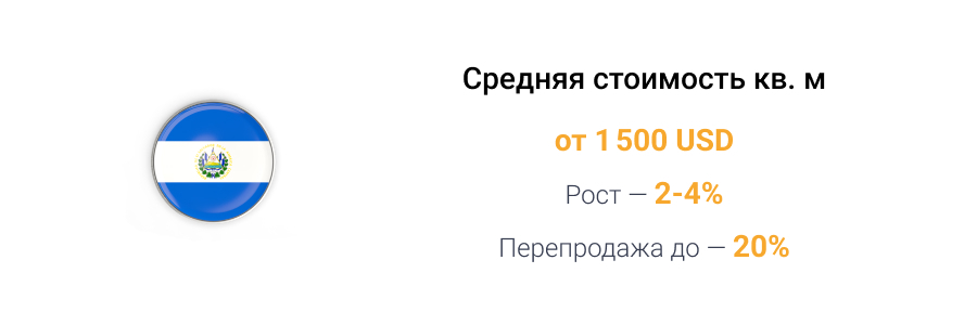 В 2021 году в Сальвадоре было принято историческое правительственное решение — биткоин официально признан платежным инструментом, что позволило использовать криптовалюты в сделках с недвижимостью. Сальвадорский сектор недвижимости характеризуется стабильным повышением стоимости. Наибольший интерес у инвесторов вызывают столица страны, Сан-Сальвадор, где доступен обширный выбор жилых и коммерческих объектов. Ла Либертад пользуется спросом у туристов и инвесторов за счет современной инфраструктуры и пляжных курортных зон. Регион Санта Ана известен культурным наследием и сравнительно доступной стоимостью жилья.