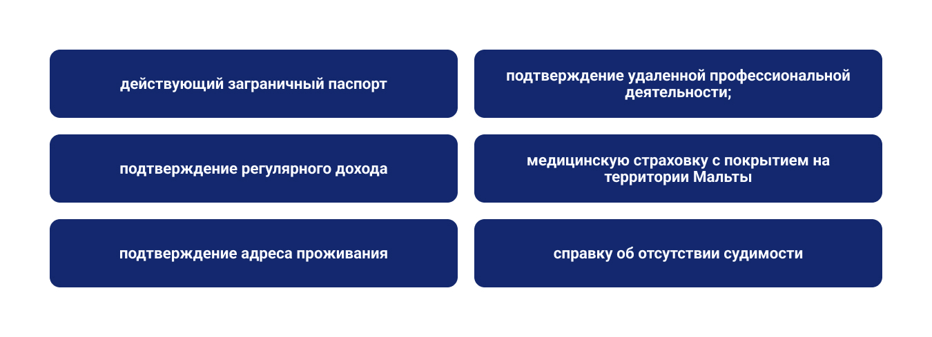 Если заявитель стремится получить мальтийскую визу цифрового кочевника для иностранцев, он должен быть готов предоставить развернутый пакет материалов, подтверждающих, что его профессиональная деятельность не трансформируется в локальную занятость после переезда.