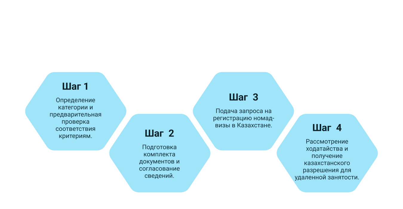 Процесс получения казахстанской номад-визы выстроен последовательно и включает следующие этапы: