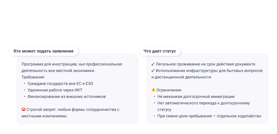При анализе документов проверяется отсутствие связи между доходом и местными контрагентами. Регулярные платежи от компаний, работающих внутри государства, могут рассматриваться как признак участия во внутреннем рынке труда и повлечь отказ в выдаче разрешения.