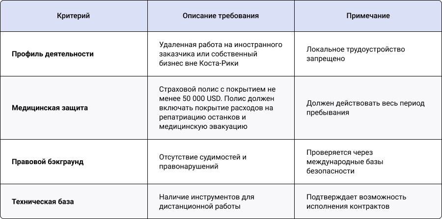 Ключевой регламент программы содержит ряд жестких критериев, без соблюдения которых оформление визы цифрового кочевника в Коста-Рике становится невозможным. Фундаментальные требования включают: