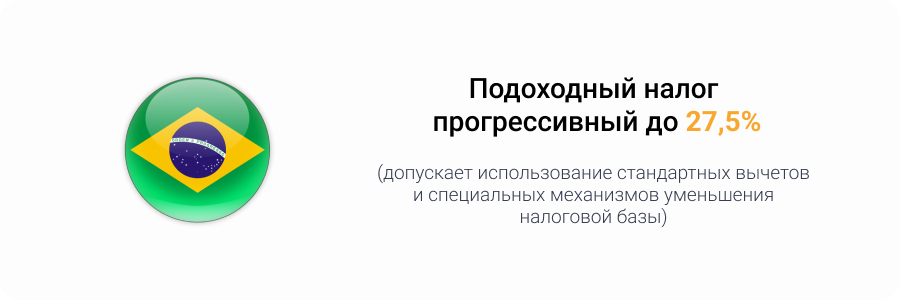 При этом бразильское налоговое право допускает использование стандартных вычетов и специальных механизмов уменьшения налоговой базы. Например, учитываются расходы на медицинские услуги и образование. Также при наличии соглашений об избежании двойного налогообложения возможно зачитывать налоги, уплаченные в другой стране.