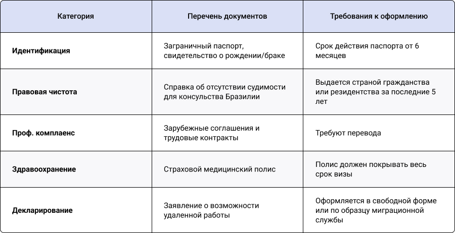 Успешная легализация дистанционной работы через бразильскую визу цифрового кочевника напрямую зависит от качества и полноты подготовленных бумаг. Основная задача претендента — предоставить миграционной службе исчерпывающие доказательства своей профессиональной автономности и правовой благонадежности.