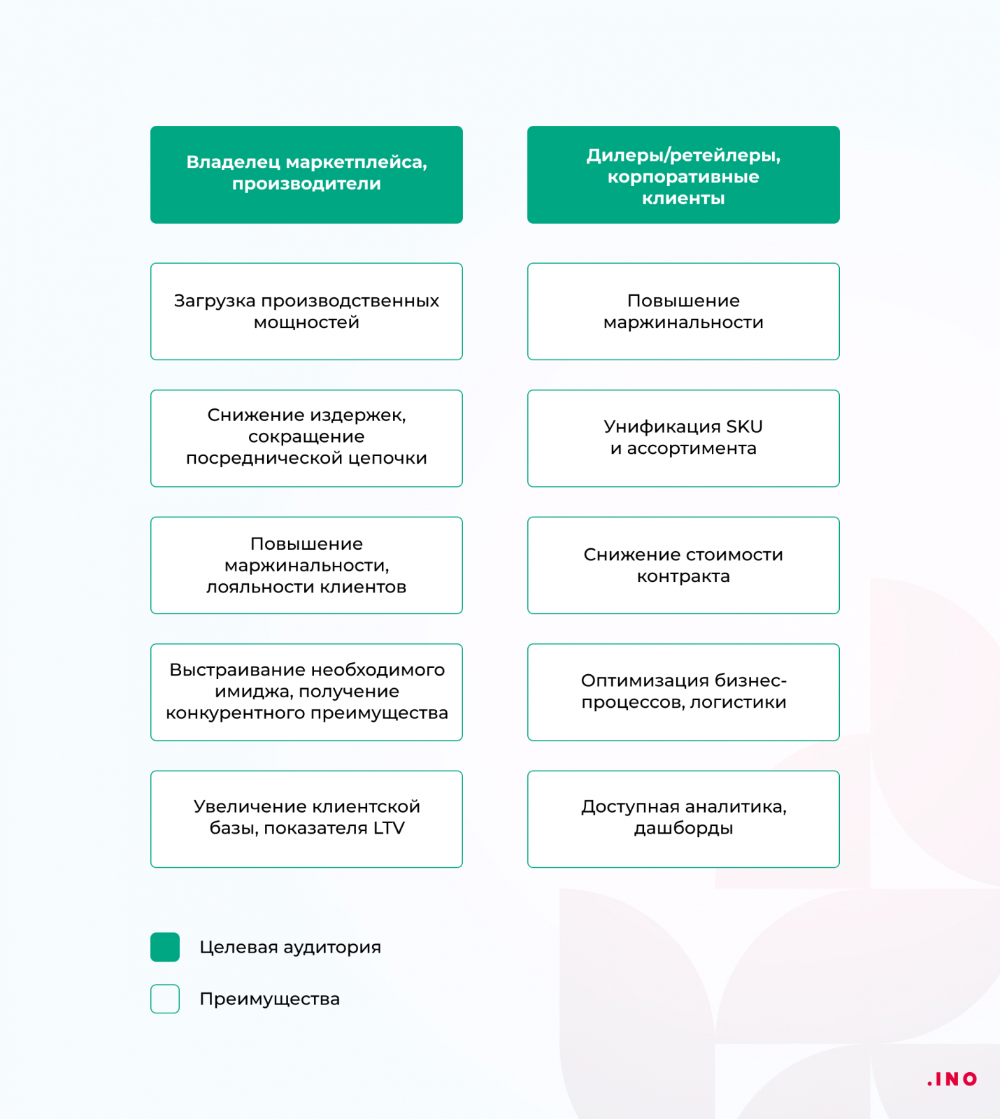 Это своеобразный онлайн-магазин, где клиенты вместо эмоциональных покупок тщательно продумывают нюансы оптовой торговли — возможности и условия сотрудничества, специфику ценообразования. Принятие решения требует гораздо большего времени, в торгах принимают несколько ЛПР (лиц, принимающих решение).