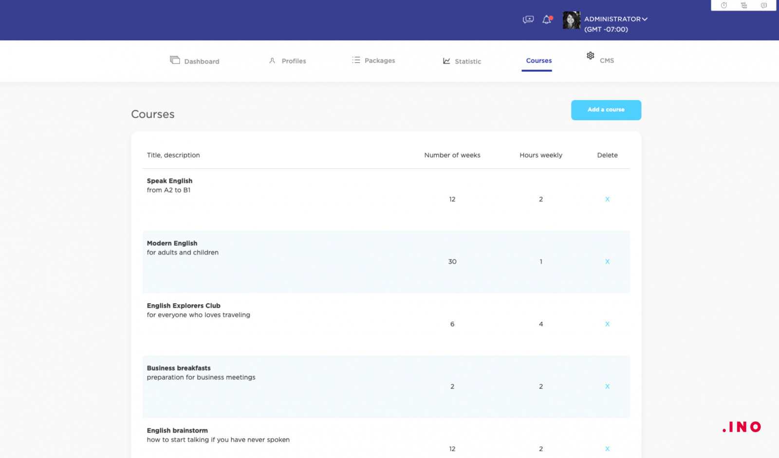 Администратор приглашает преподавателей, партнёров к сотрудничеству, следит за оплатой и действиями других ролей, управляет пакетами занятий, выдаёт персональные скидки.