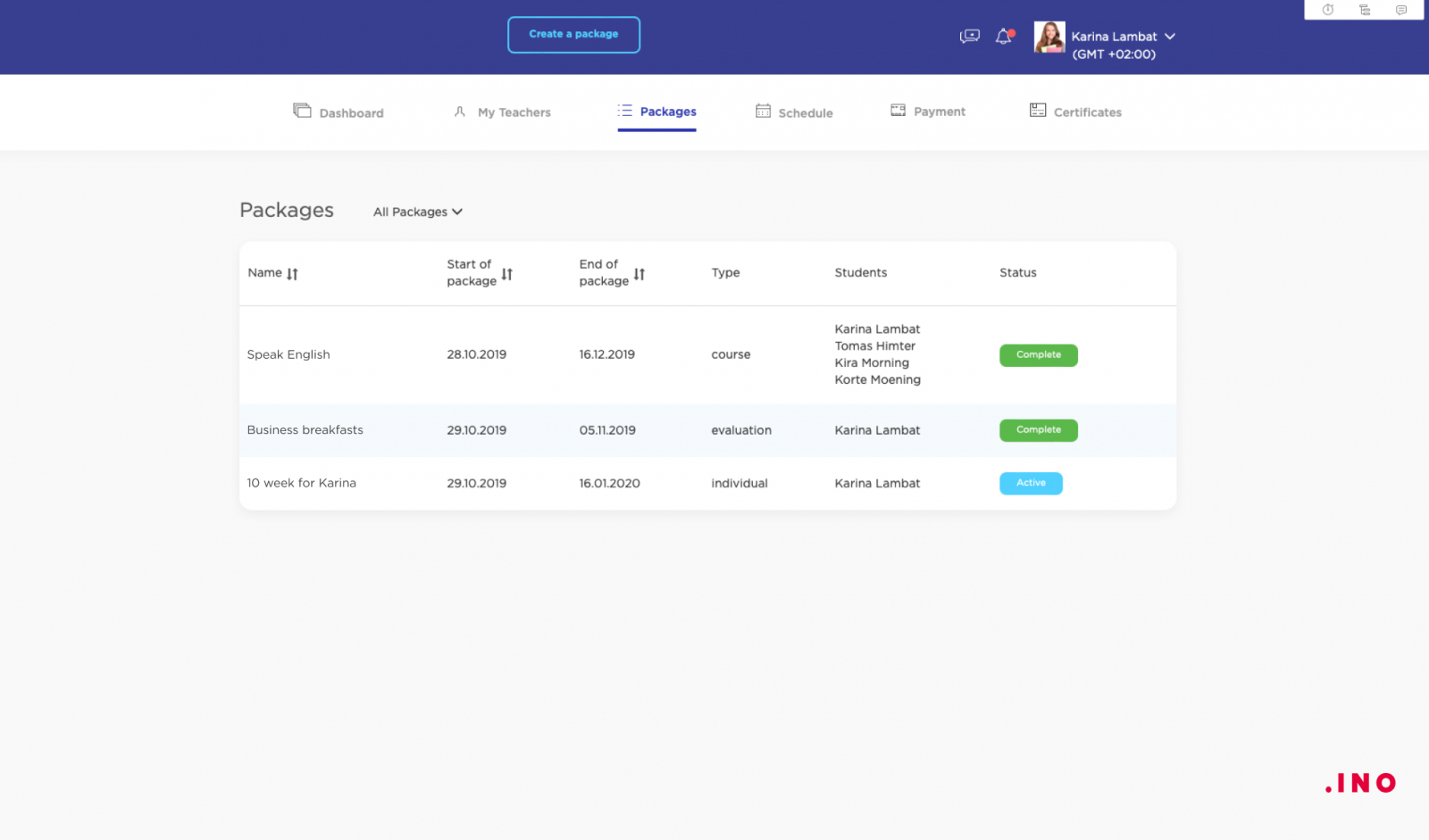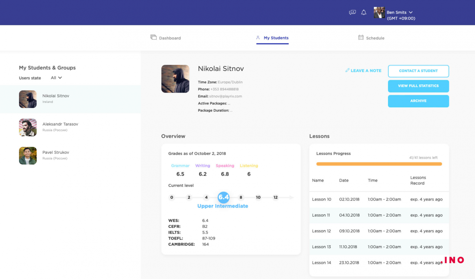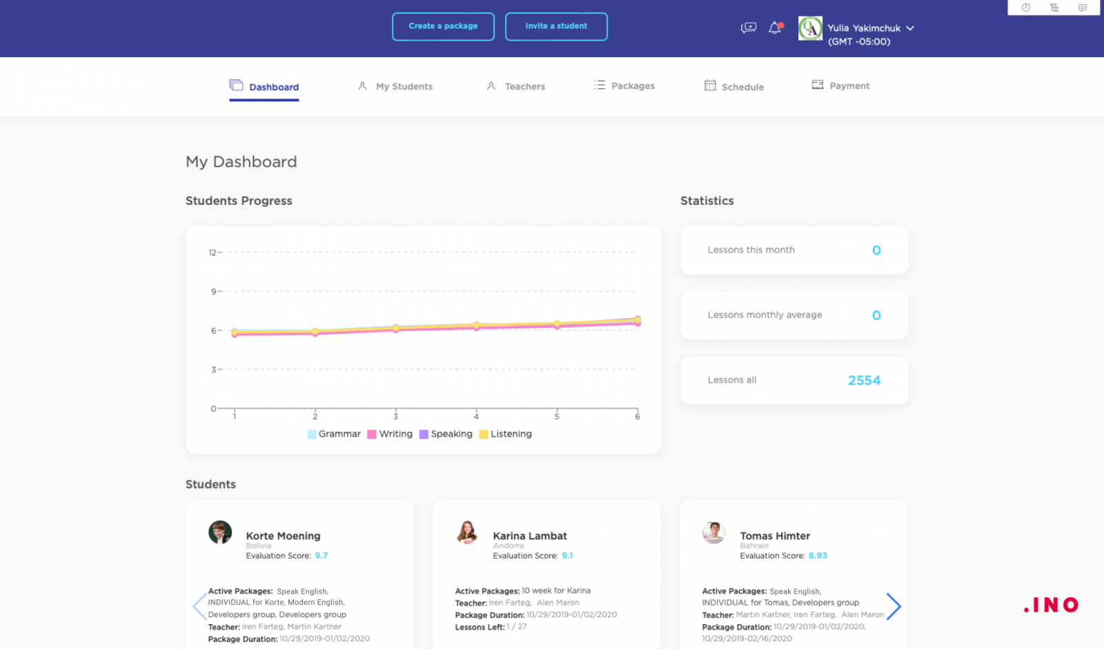 Партнёр заключает договор, создаёт и оплачивает пакеты занятий, приглашает студентов, следит за статистикой обучения, выбирает расписание групповых занятий.