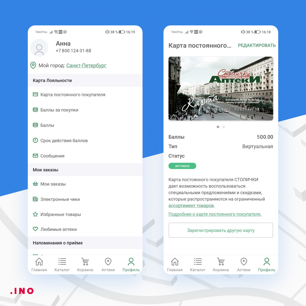 Приложение разрабатывали для повышения лояльность потребителей. Через личный кабинет пользователи могут отслеживать заказы, добавлять препараты в «Избранное», активировать карту постоянного покупателя, видеть накопленные баллы.