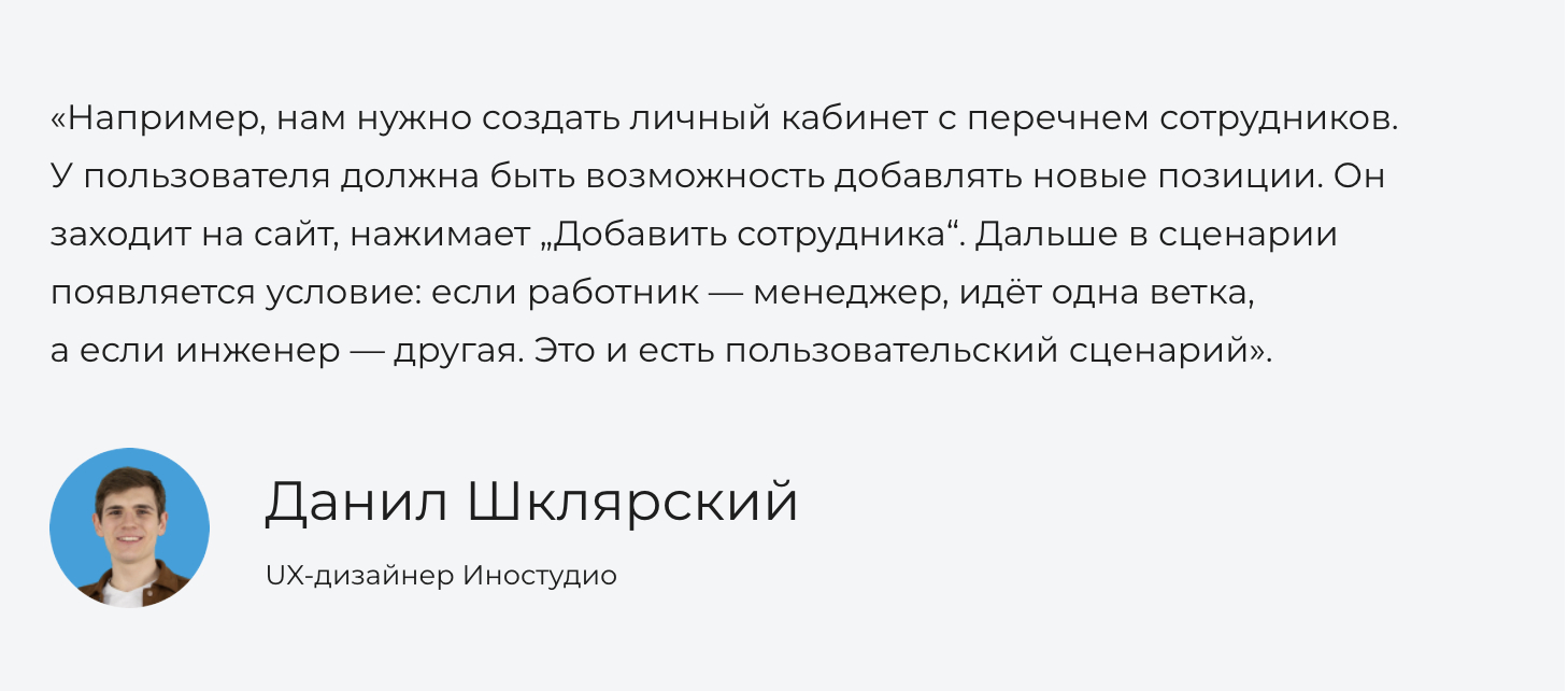 UX-дизайнер дорабатывает путь пользователя. Когда получился сценарий, специалист его «дошлифовывает». Например, убирает лишние шаги, которые усложняют путь по сайту или приложению, или продумывает альтернативные сценарии.