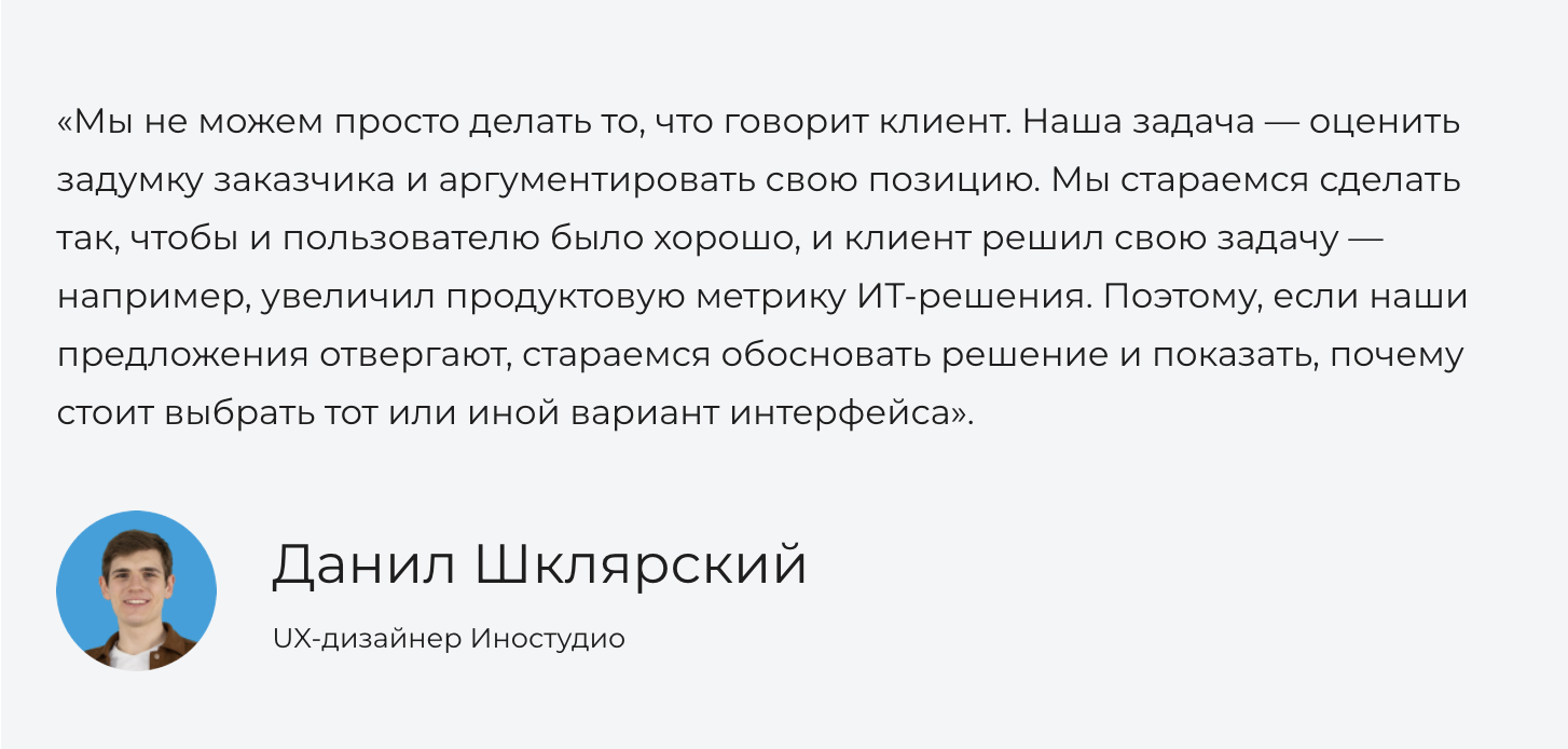 Услуги UX-дизайна предлагают многие компании, но у них не всегда получается донести пользу этого направления работы. Чтобы людям из других сфер стало понятнее, чем занимаются UX-дизайнеры, мы собрали шесть основных вопросов, которые возникают у заказчиков. UX-дизайнер Иностудио Данил Шклярский ответил на них в этой статье.
