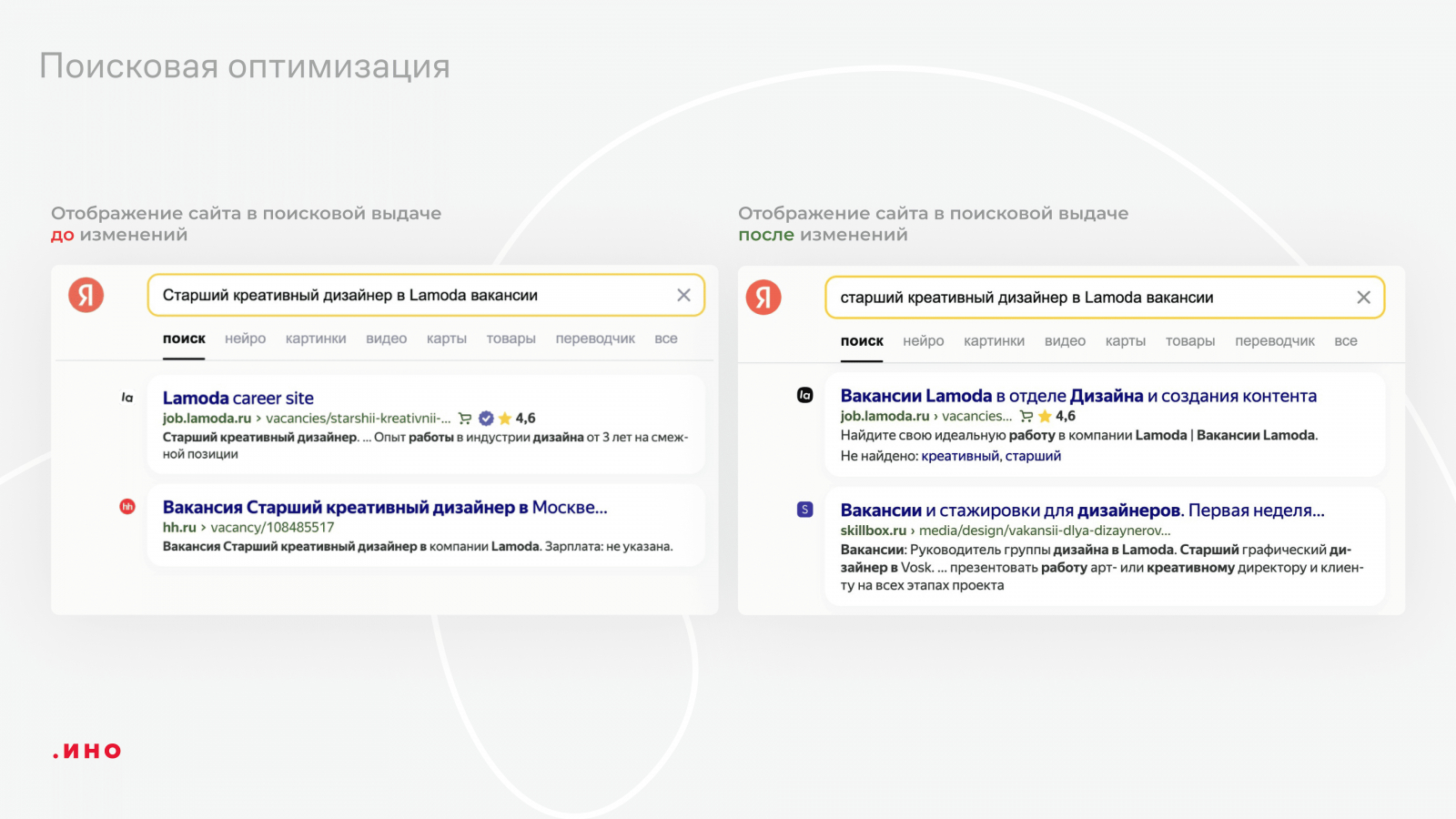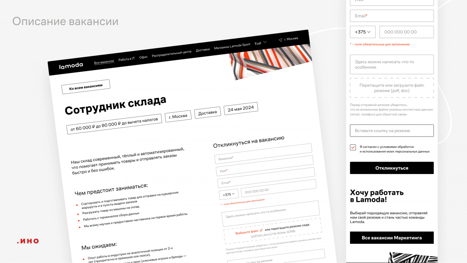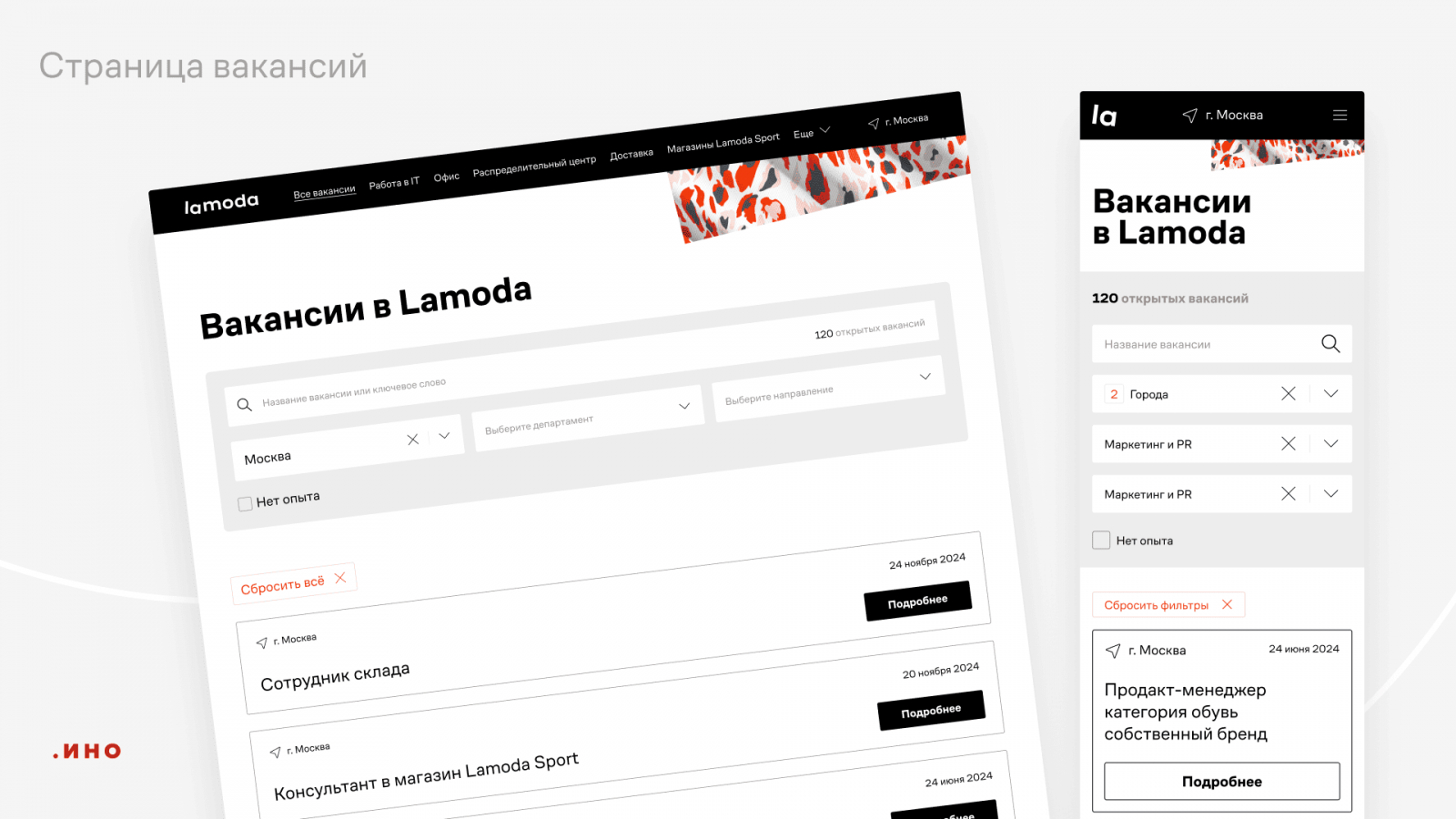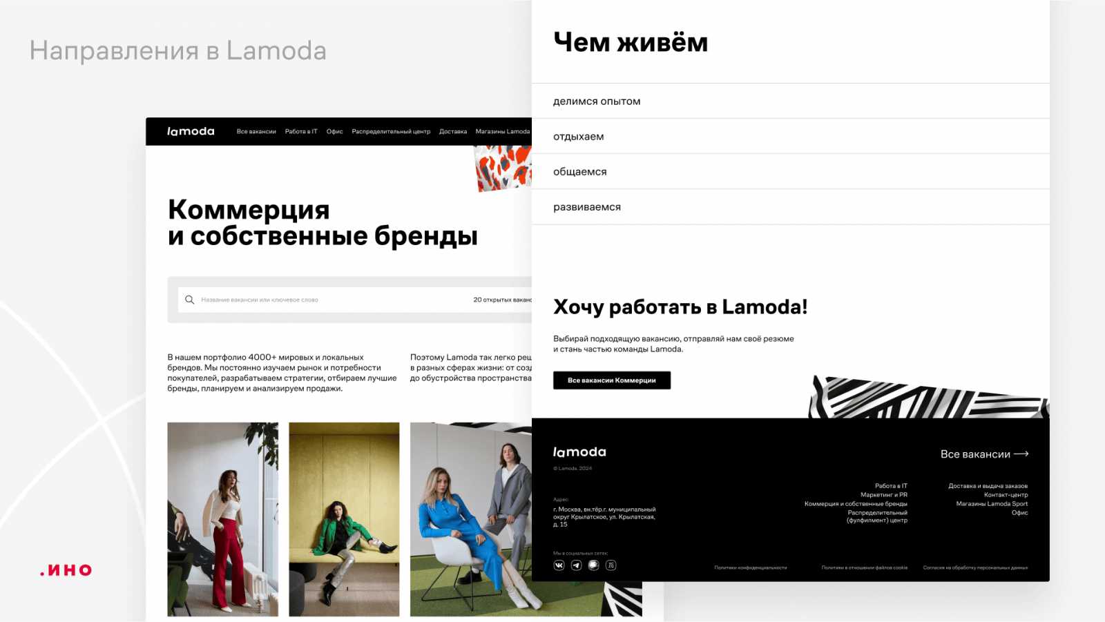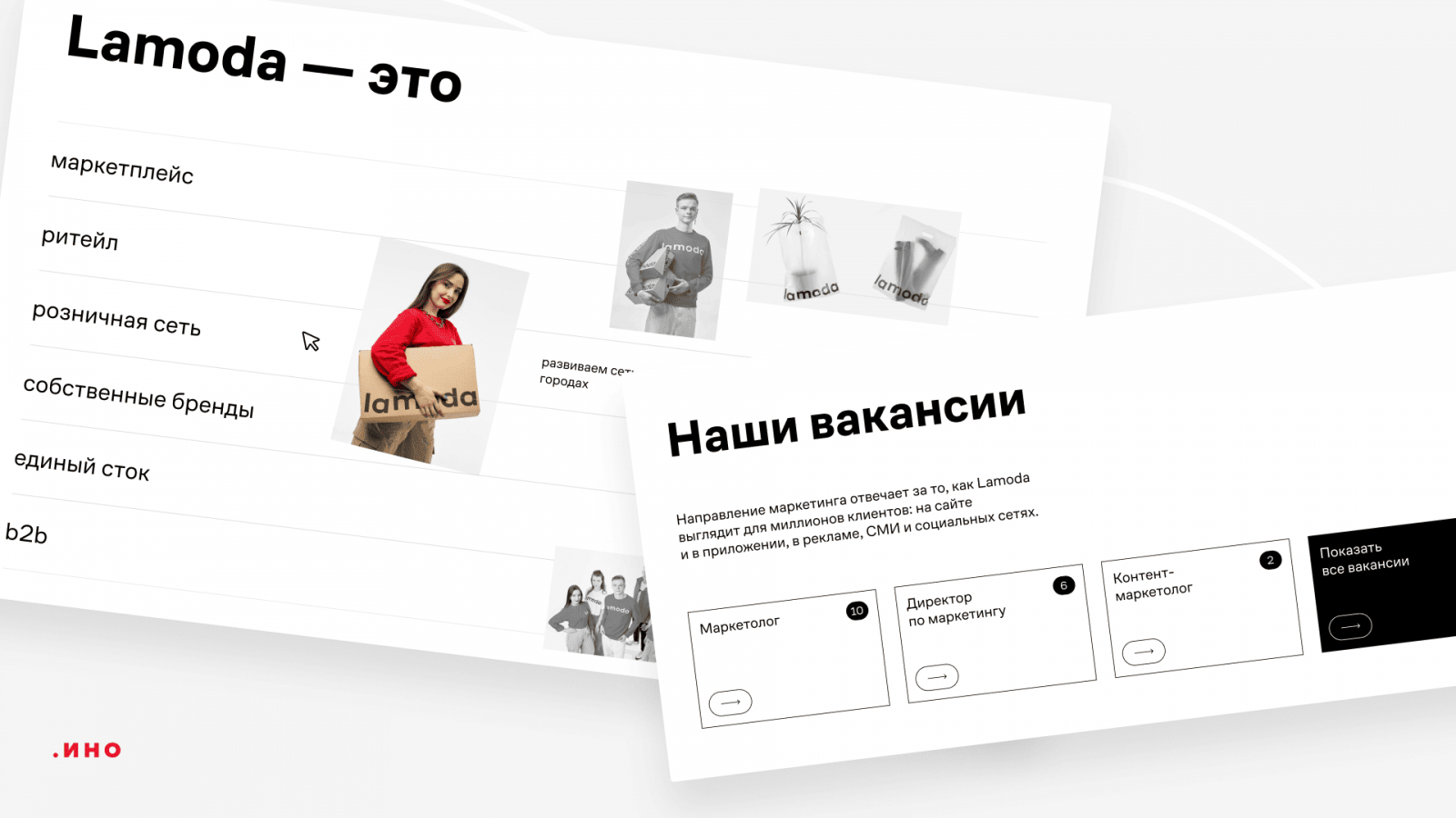 Эксперты со стороны Lamoda поделились положительными впечатлениями о партнёрстве с командой Иностудио и отметили, что карьерный сайт в первые три дня принёс приятное количество откликов (NDA).