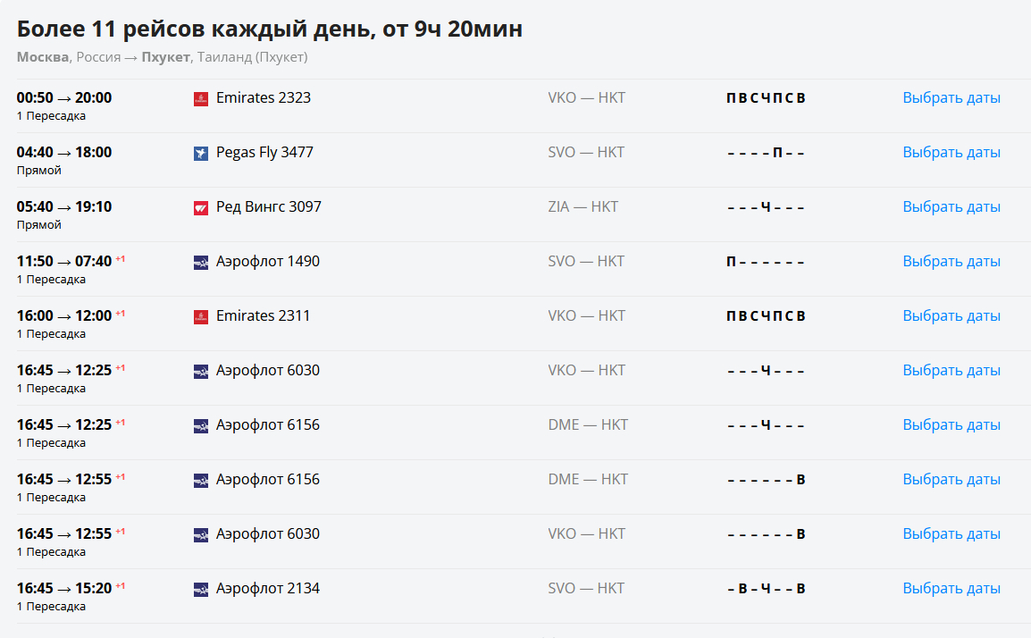 Из Москвы: ежедневные прямые рейсы в Бангкок (аэропорт Суварнабхуми) и Пхукет, время в пути около 9,5 часов. В туристический сезон возможны прямые рейсы в Паттайю.