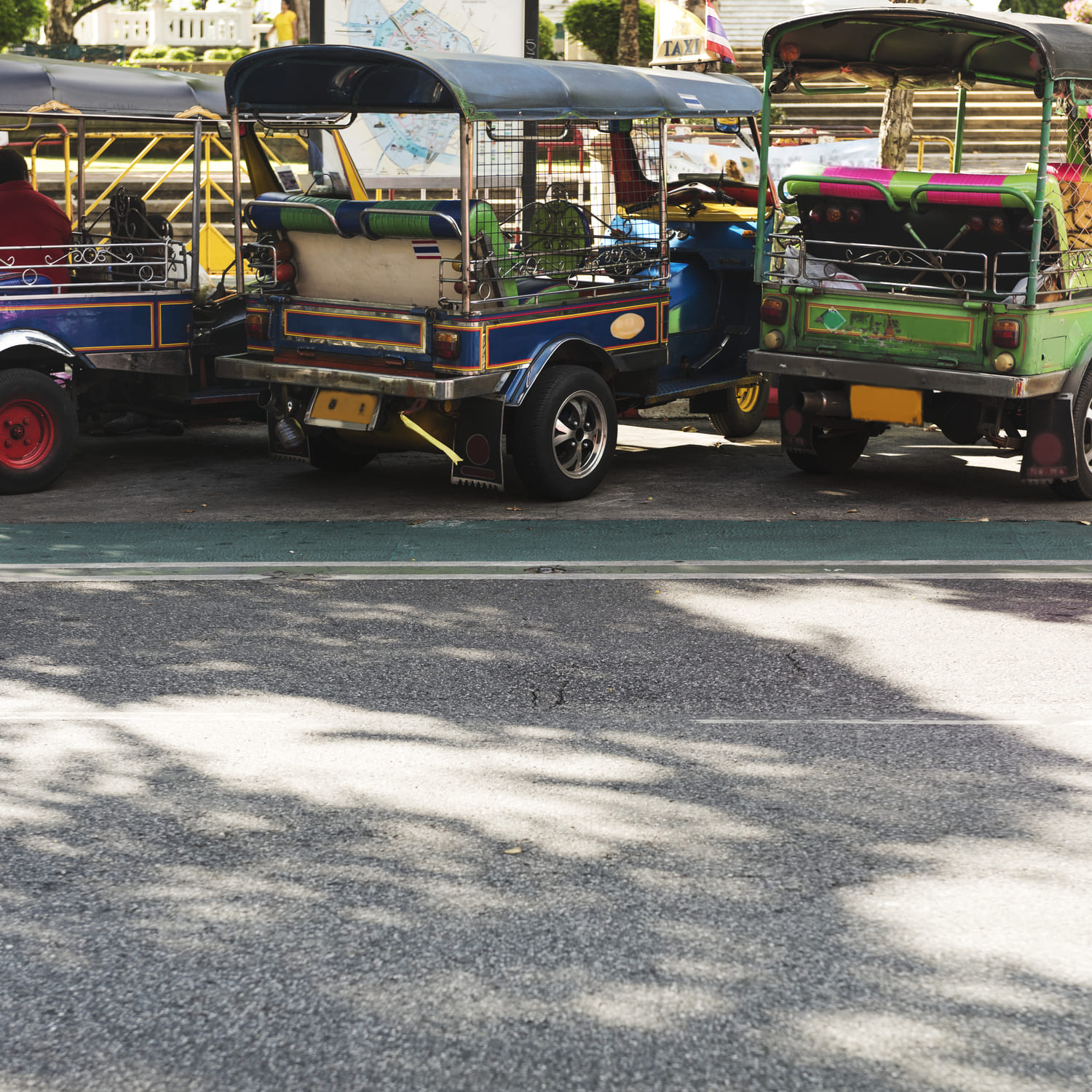 В дополнение к стандартным автобусам, маршруткам, такси и метро в Бангкоке, в Таиланде представлен уникальный городской транспорт — тук-туки. Эти небольшие пикапы с открытым кузовом и прикрепленными скамейками для пассажиров бывают разных размеров: от больших маршруток до компактных трехколесных моделей, рассчитанных на несколько человек.