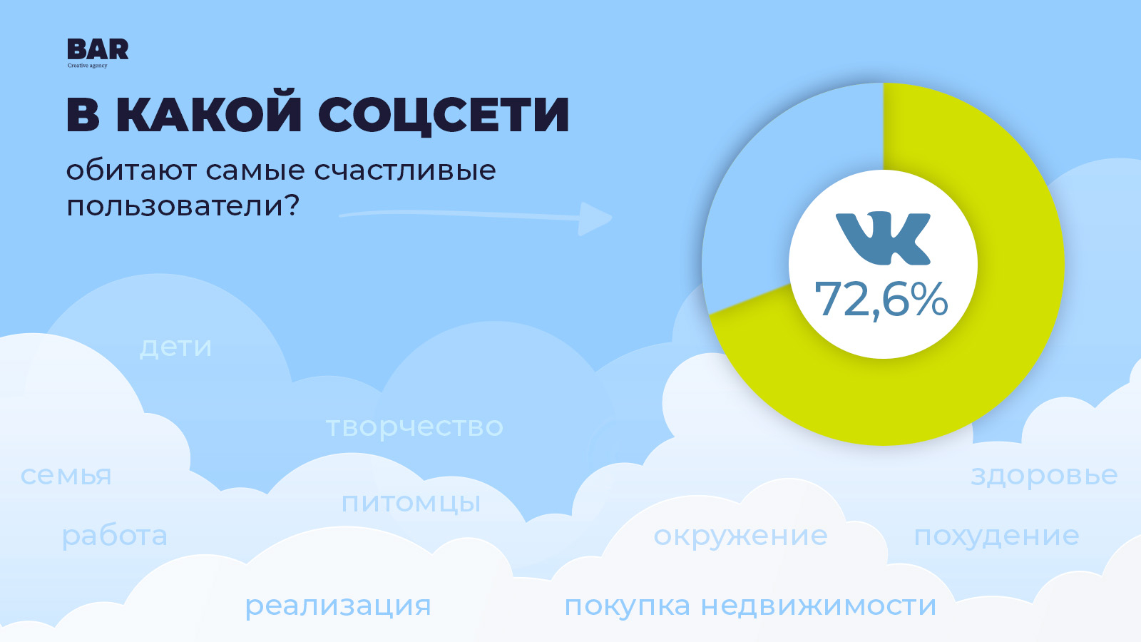 Сложившаяся в России политическая и социально-экономическая ситуация привела к тому, что темой большинства социологических исследований за последний год стал уровень стресса и способы борьбы с ним. Команда BAR creative agency предлагает сегодня поговорить о другом — о счастье.
