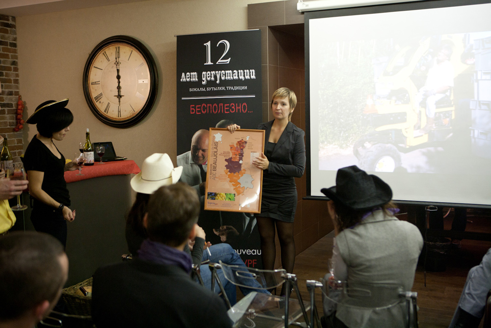 В этот раз мы пригласили настоящего Сомелье. Знаток вин рассказал нам про потребление напитка, праздник Божоле, винные традиции, показал кино и массу диковинных гаджетов.