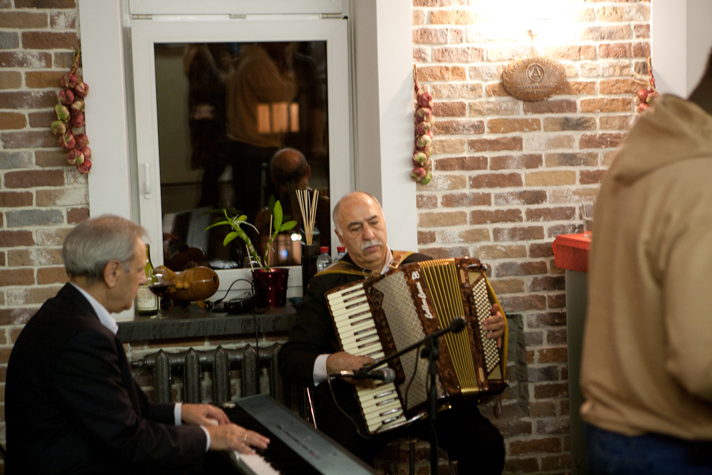 Харизматичные дядьки всю дорогу сопровождали мероприятие игрой на фортепиано и аккордеоне. По этажам агентства лилась мелодия французской глубинки (как мы ее себе представляем).