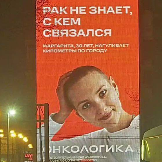 Мы разработали рекламную кампанию для фонда «Онкологика», которая снова украсила все медиафасады Москвы и мониторы экранов загорелись оранжевым!