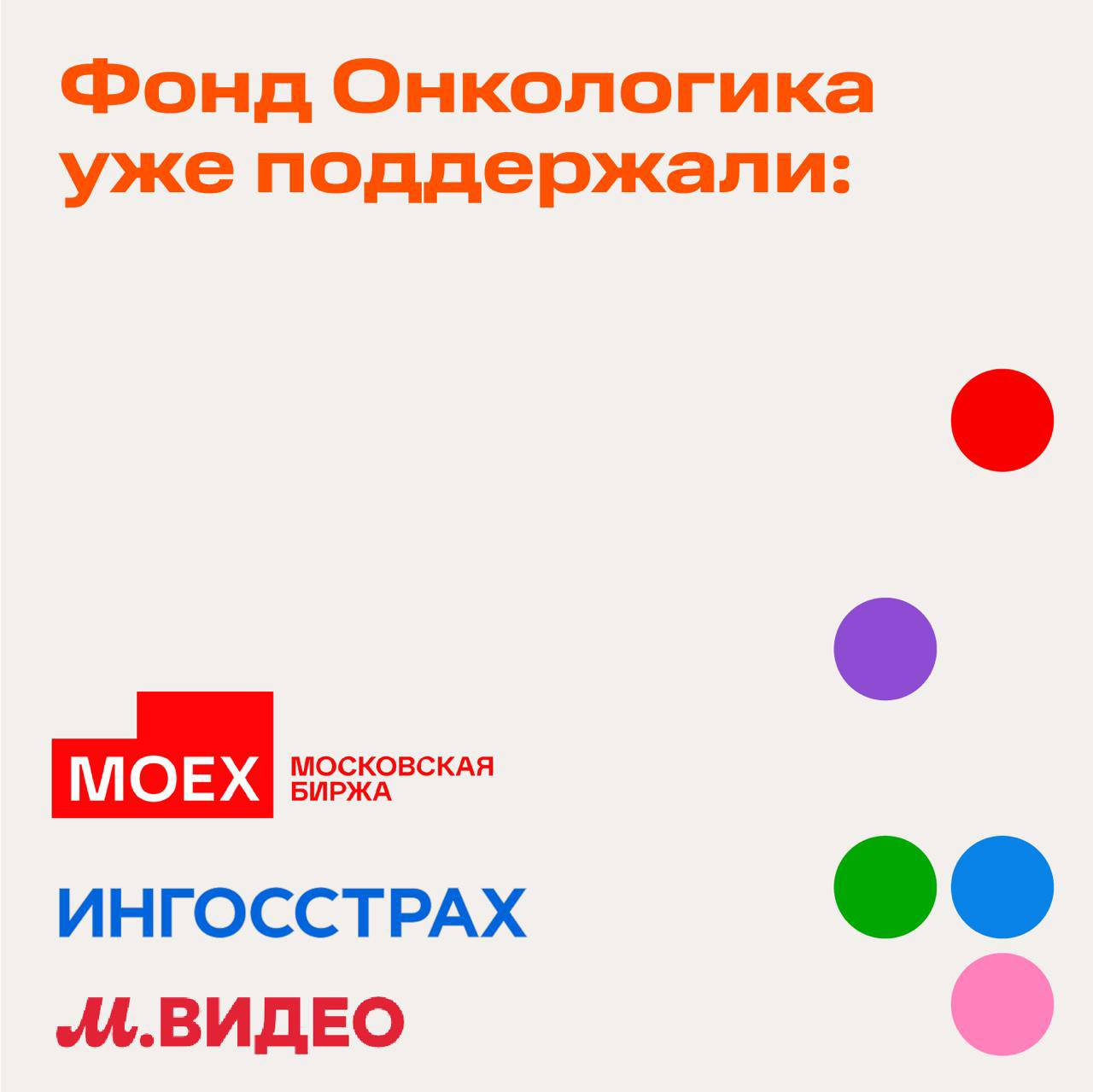 Фонд «Онкологика» уже поддержали крупные компании: М. Видео, Ингосстрах и Московская биржа