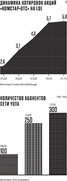 Впрочем, поводов для оптимизма у Свердлова хватает и без президентской награды. Сеть Yota в коммерческую эксплуатацию он запустил в июне 2009-го, а по итогам года сумел собрать более 300 тыс. абонентов. Ближайший преследователь "Комстар-ОТС" данных о количестве абонентов WiMAX не раскрывает, но, по оценкам участников рынка, их не больше 30-40 тыс. Yota и "Комстар-ОТС" обошли операторов сотовой связи, внедряющих технологии 3G (скорость до 4 Мбит/с), сразу стартовав с четвертого поколения связи 4G (пока до 10 Мбит/с).