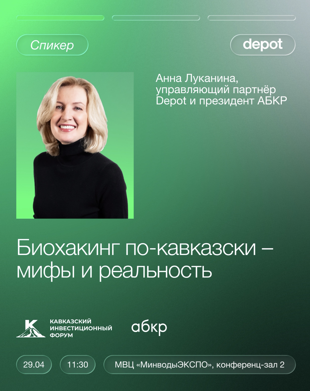 Анна Луканина, управляющий партнёр Depot и президент АБКР, выступит на Кавказском инвестиционном форуме, направленном на развитие инвестиционного потенциала Северо-Кавказского федерального округа и устойчивое социально-экономическое развитие региона.