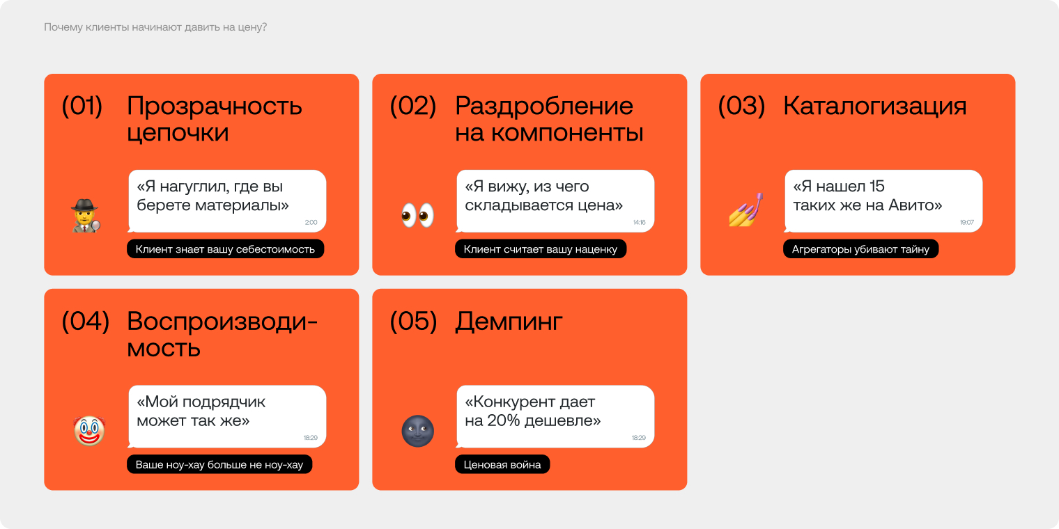 Клиент знает цену материала, человеко-часов, инструмента — и считает, что ваша маржа — «наглость».