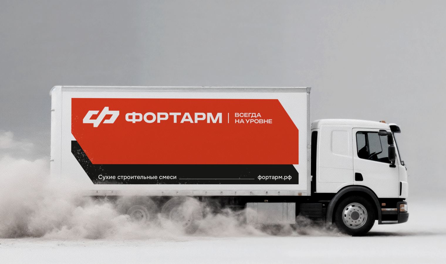 Помимо привычных элементов — курток, касок и брелоков — мы создали мобильный брендинг: яркий, запоминающийся дизайн большегруза, который превращает транспорт в движущийся билборд.