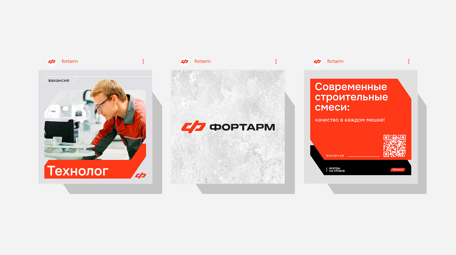 Айдентика Фортарм — это визуальный манифест надежности. Чтобы выделиться на фоне конкурентов, мы строили стиль на четких линиях, геометричных плашках и открытых цветах — без лишнего декора, но с твердым характером.