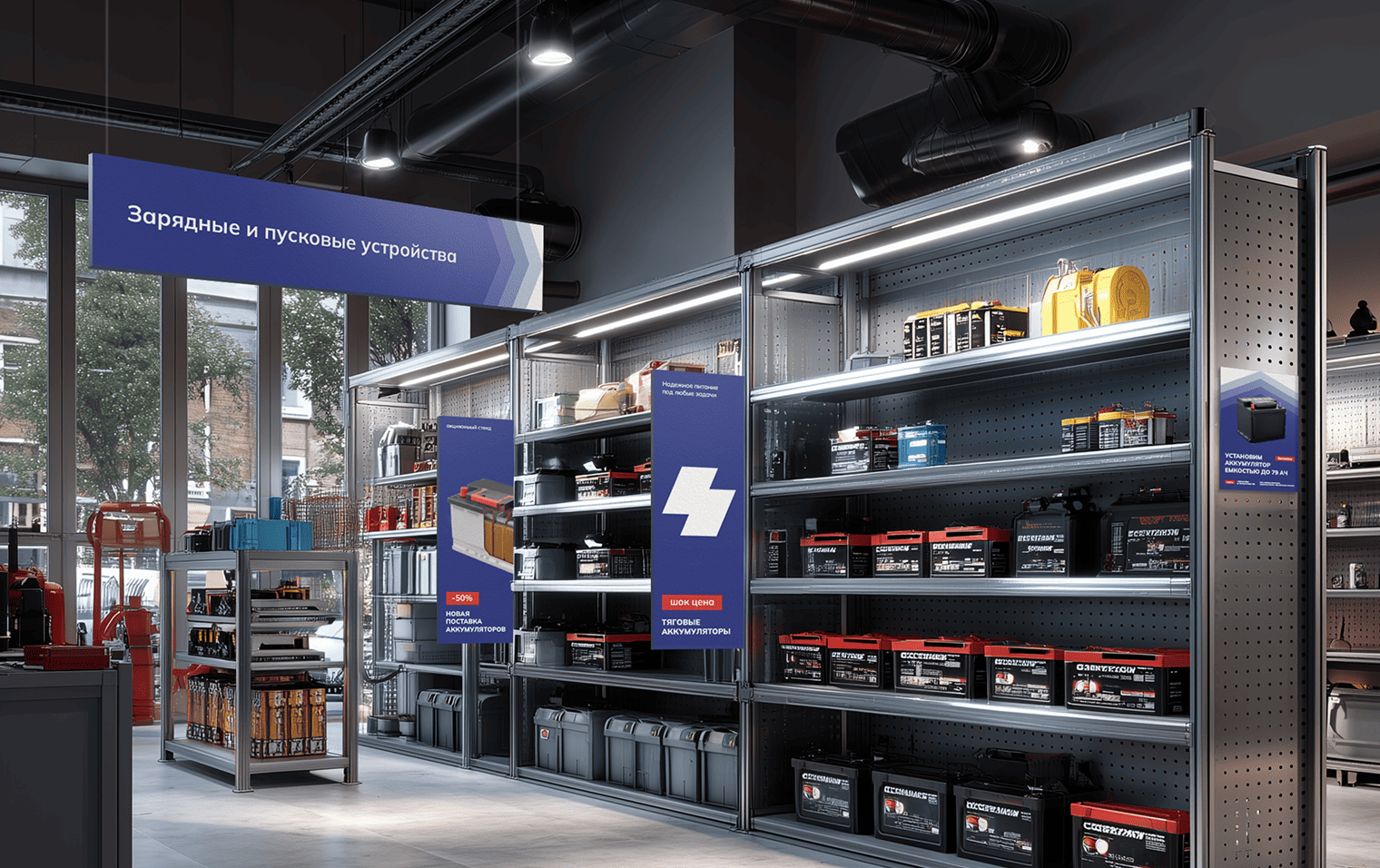 Причина: сейчас магазины сети работают под слабым названием «Авто Аккумуляторы», узко позиционирующим бренд. Клиент решил консолидировать лидерство в регионе и занять доминирующую позицию под сильным, емким именем — Все аккумуляторы. Текущая визуальная айдентика слабо выражена — оформление точек продаж стихийное, без единой системы.