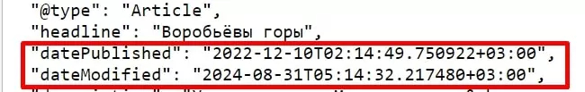 11. Меняем даты. Указываем, когда статья была впервые опубликована и когда доработана. Важно, чтобы даты были видны и в коде, и на самой странице.