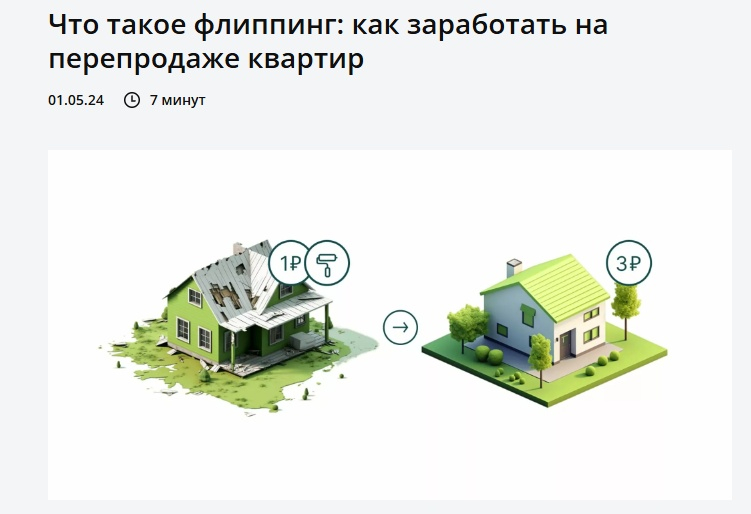 Подходит для материалов формата «Что такое…». Например, статья о флиппинге — термин может быть непонятен тем, кто не в теме. Флиппинг — это покупка квартир с целью ремонта и перепродажи с наценкой. Отражаем этот процесс на обложке: